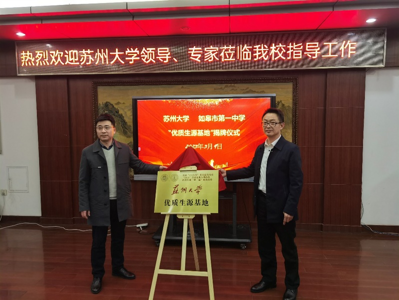 在签约、揭牌仪式上,杜新建校长介绍了如皋市第一中学的办学理念与发展情况,杨礼富书记介绍了91猫先生 的办学历史及学科发展情况,田利剑副校长对近年来如皋市第一中学学生考取91猫先生 及校际交流情况作了汇报,赵承良对91猫先生 科普教育基地及优质生源基地概况作了汇报。杨礼富书记和杜新建校长代表双方进行科普教育基地的签约,并为科普教育基地和优质生源基地揭牌。