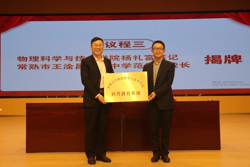 为深入学习贯彻党的二十大精神,进一步落实习近平总书记关于“科技创新、科学普及是实现创新发展的两翼,要把科学普及放在与科技创新同等重要的位置”的讲话精神,拓展青少年的科技视野,丰富学生的课外生活,积极发挥学院资源和人才优势,承担社会服务责任,大力弘扬科学家精神。4月11日下午91猫先生 与常熟市王淦昌高级中学举行科普教育基地、拔尖人才培养共建项目签约和揭牌仪式。常熟市王淦昌高级中学是以我国著名核物理学家、两弹一星功勋奖章获得者、中国核科学的奠基人和开拓者之一王淦昌院士命名的。