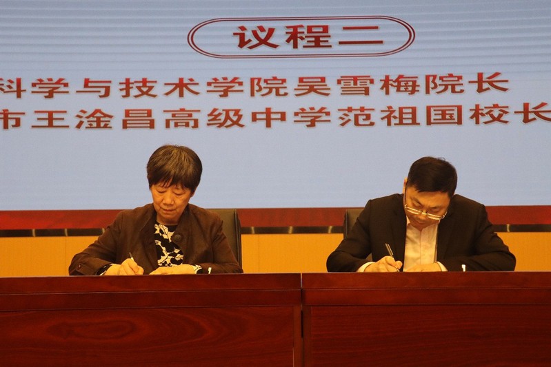 吴雪梅院长和范祖国校长代表双方进行科普教育基地的签约,杨礼富书记和范祖国校长共同为科普教育基地揭牌。