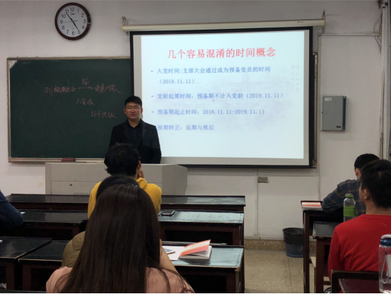 郭老师从入党流程开始讲解,对发展之前、确定发展对象、预备党员接受和预备党员转正四个阶段做了详细的介绍。在此次培训过程中,郭老师利用真实的例子以及身边的事情向学员们强调了入党流程的规范性和严肃性,希望广大学员能够认真对待,走好入党流程的每一步。此外,对于新增加的入党流程和注意事项,郭老师都做了重点标记,提醒同学们要着重注意,切勿忽视。