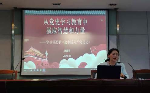 随后学院党委孙德芬书记以“从党史学习教育中汲取智慧和力量——学习习近平《论中国共产党历史》”为题讲了一堂生动的党课,孙书记从党史学习教育动员大会精神入手,通过简要梳理《论中国共产党历史》,逐条分析、回答学史明什么理?学史怎样增信?学史崇什么样的德?学史如何力行?最后孙书记强调要始终坚持唯物史观从党的光辉奋斗历史中总结经验、砥砺信仰、淬炼灵魂,增强开拓前进的勇气和力量。孙书记的党课阐述道理深入浅出,举例鲜活生动,用通俗易懂的语言和鲜活的实例把一个个抽象复杂的主题阐述的清清楚楚。