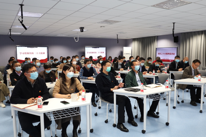 李孝峰以《学习贯彻党的二十大精神》为题,从深刻领会党的二十大主题、党的二十大报告的诞生过程、深刻领会过去五年的工作和新时代十年的伟大变革、深刻领会开辟马克思主义中国化时代化新境界、深刻领会中国式现代化、深刻领会全面建设社会主义现代化国家的目标任务、深刻领会教育科技人才方面的重大部署、深刻领会坚持党的全面领导和全面从严治党的重大部署、深刻认识风险挑战,着力增强防范化解能力、深刻领会“全党要把青年工作作为战略性工作来抓”十个方面进行了宣讲,深入浅出地解读了党的二十大深刻内涵。