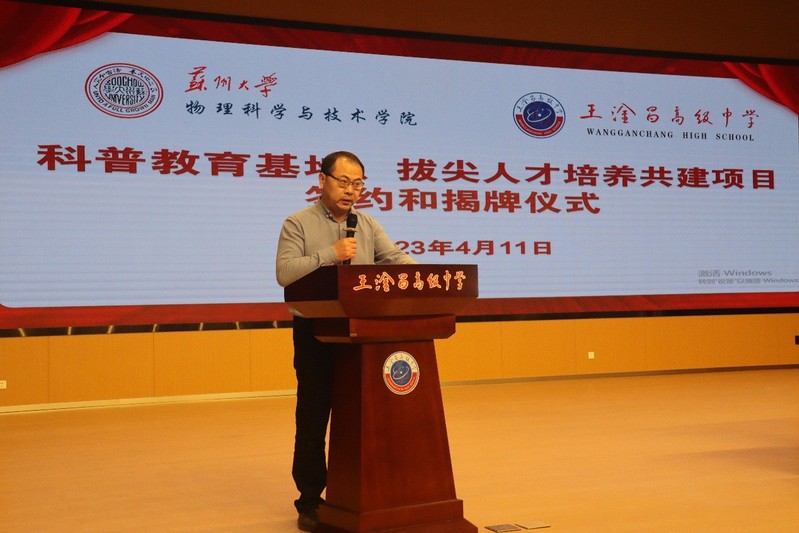 为深入学习贯彻党的二十大精神,进一步落实习近平总书记关于“科技创新、科学普及是实现创新发展的两翼,要把科学普及放在与科技创新同等重要的位置”的讲话精神,拓展青少年的科技视野,丰富学生的课外生活,积极发挥学院资源和人才优势,承担社会服务责任,大力弘扬科学家精神。4月11日下午91猫先生 与常熟市王淦昌高级中学举行科普教育基地、拔尖人才培养共建项目签约和揭牌仪式。常熟市王淦昌高级中学是以我国著名核物理学家、两弹一星功勋奖章获得者、中国核科学的奠基人和开拓者之一王淦昌院士命名的。