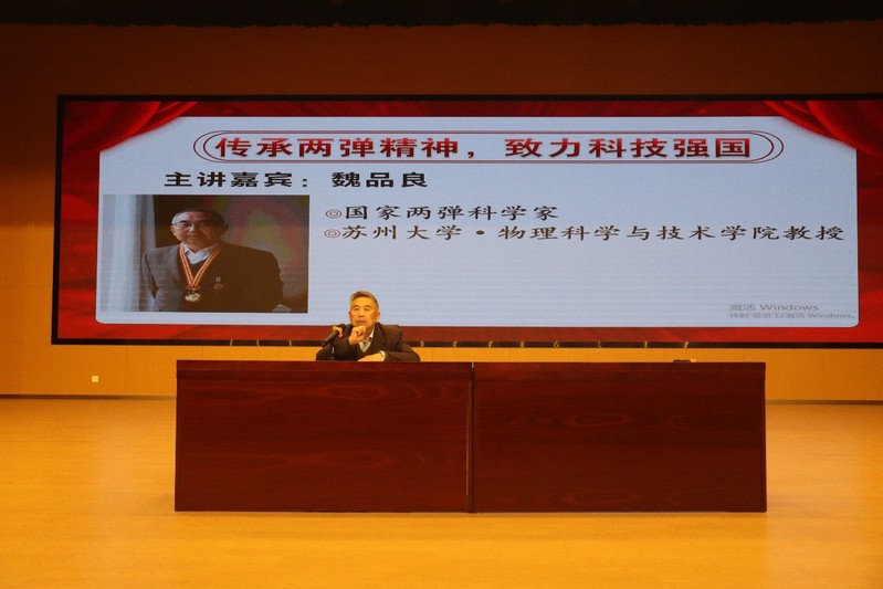 魏品良教授坚持“党在哪里需要我们,我们就去哪里”的信仰,分享了他的青年时代在衡阳、青海等地的原子弹开发与研究的工作经历,详细阐述了王淦昌、钱三强等“两弹”科学家的卓越贡献及高尚情操。同学们对老一辈科学家们勇往直前、隐姓埋名、淡泊名利、艰苦奋斗等优良作风非常敬佩,对魏老师的高尚品格产生了敬仰。青年一代要从老一辈科学家手中接过“传承两弹精神,致力科技强国”的接力棒,脚踏实地,志存高远,努力为国家科技强国建设添砖加瓦。