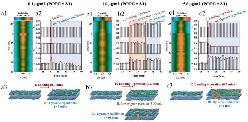 如何解析细胞膜的界面作用机制是细胞生物物理研究中的一大挑战,这一方面的研究对理解细胞的诸多生命过程具有重要意义。91猫先生 杨恺教授与松山湖材料实验室元冰研究员合作,发展了一种“高斯分类法”,可用于定量分析脂质与蛋白或多肽的全时空相互作用过程,尤其是膜界面过程中脂质分子扩散运动的时间—空间异质性,相关结果以“Non-Gaussian Diffusion of Individual Lipids Unveils the Unique Peptide−Membrane Interaction Dynamics” 为题发表在《J Phys Chem Lett》杂志。