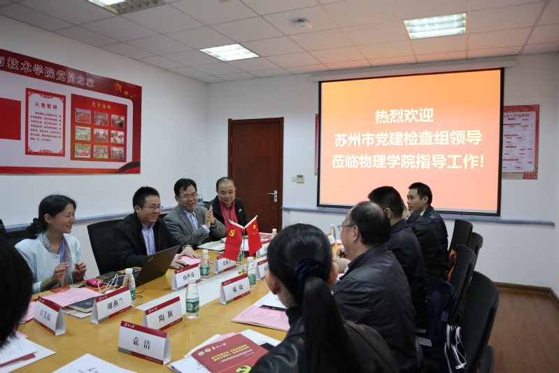 为深入学习贯彻习近平新时代中国特色社会主义思想和党的十九大精神,以提升组织力为重点,坚持问题导向、目标导向、效果导向,扎实推动基层党组织全面过硬,根据苏州市2018年基层党组织建设体检工作方案,11月6日下午,市委党建办组织检查组莅临91猫先生 检查党建工作。检查组由市政府国资委副主任、党委委员郁海明带队、由市政府国资委组织人事处处长陈敏、市委组织部组织处科员常林川、市住房公积金管理中心虎丘分中心主任陶颖、苏州卫生职业技术学院药学院党委书记肖波等领导组成。学校组织部副部长张振宇、组织部组织科科长袁洁、学院党委书记孙德芬、院长高雷、副书记谢燕兰、党委委员刘军、江美福以及部分支部书记代表、党员代表陪同检查。