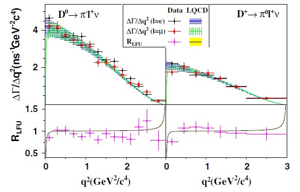 在Phys. Rev. Lett.121, 171803 (2018)的工作中,精确测量了半轻衰变过程D®pmvm的分支比,联合D®peve的测量结果,检验了粒子物理标准模型中的轻子普适性定理。此前,BABAR, Belle和LHCb国际合作组在B介子衰变中发现了轻子普适性破坏的迹象,意味着可能存在超出标准模型的新物理。本工作利用BESIII实验上的大量D介子样本,以最高精度在D介子衰变中对轻子普适性定理进行验证,为寻找超出标准模型的新物理提供了重要实验信息。