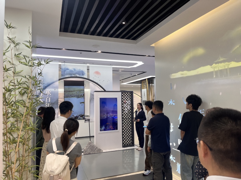 党员一行首先走进李公堤廉勤文化馆古代展区,沿着“源起李公堤,寻江南风骨”的脉络,探寻廉勤文化的历史渊源。馆内以“廉勤为民”为核心,通过苏工、苏作精品与多媒体展陈,立体呈现了以清代廉吏李超琼为代表的古代清官事迹。在“李超琼与李公堤”专题展区,党员们驻足观看光绪年间李超琼“以工代赈”修建金鸡湖堤坝的史料档案 —— 从实地勘察时“抱病督工”的记载,到竣工时“移舟穿曲浦,堤势偃长虹”的诗句,生动展现了其“为官一任、造福一方”的担当精神。馆内陈列的姚建萍“清莲园区”双面绣、蔡云娣清官砖雕等艺术作品,将江南廉韵与传统工艺巧妙融合,让党员们直观感受到“以廉为美、以勤为贵的文化浸润。