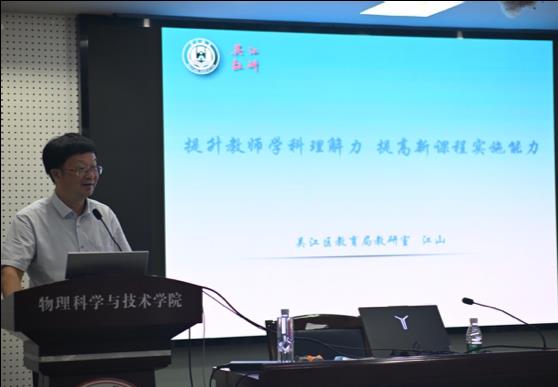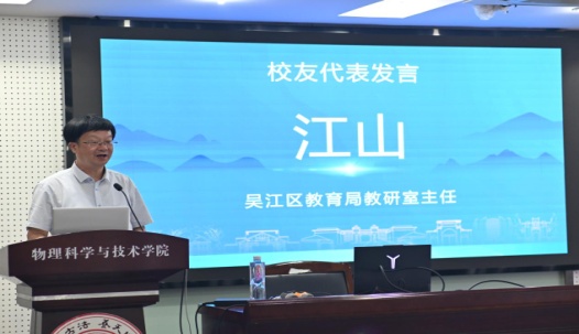 吴江区教育局教研室主任江山发表了鼓舞人心的讲话,他强调教育是党和国家的大计,每一位师范生都应该树立远大的理想信念,将个人发展与国家需求紧密结合,以高度的责任感和使命感投身教育事业。