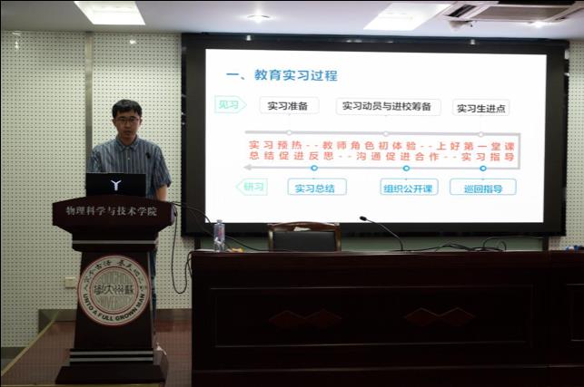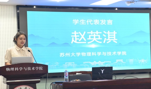 2021级物理学师范本科生赵英淇作为实习生代表发言,她感谢学校和学院提供的宝贵实习机会,并表示会积极参与实践,传承教育家精神,努力提升教育教学能力和综合素质。