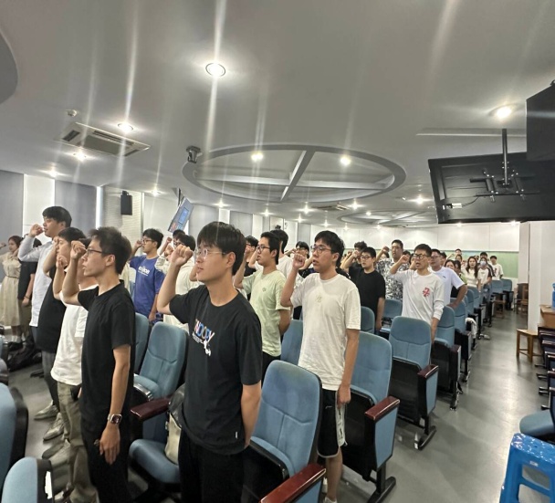 最后是教育实习动员环节。刘增泽老师强调了实习的重要性和对师范生职业发展的深远影响,指出这是学生们将理论知识与实践相结合,锻炼职业能力,迅速完成从学生到教师角色转变的关键时期。他鼓励学生们珍惜这次实习的机会,以积极的态度和扎实的基础,迎接实习中的挑战和机遇。在人民教师宣誓环节,领誓人徐心悦带领全体同学庄严宣誓,表达了对未来教育事业的坚定承诺。宣誓仪式激励着每一位师生以更加饱满的热情和更加坚定的信念,投身于教育事业,为培养新时代的创新人才不懈努力。