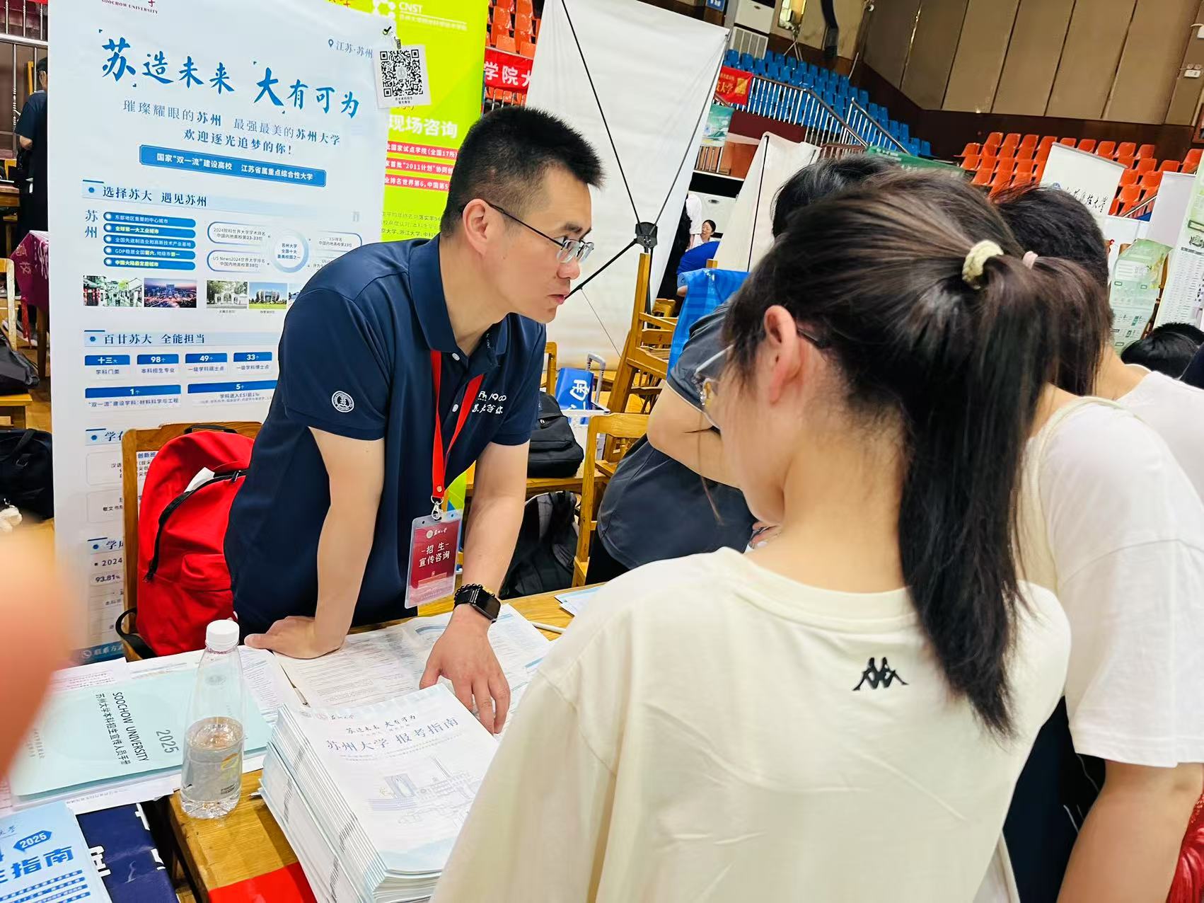 学院领导带领骨干教师、学生志愿者奔赴海安、如皋、如东、启东、海门、通州等南通7个县(市、区),深入覆盖24所重点中学,开展招生宣传活动,参与苏州市、南通市等城市级大型高招咨询会。宣传团队通过专题讲座、学科展示、面对面咨询等形式,实事求是、细致入微地解读学校招生政策,耐心解答每一位考生、家长的提问,确保信息传递准确到位。