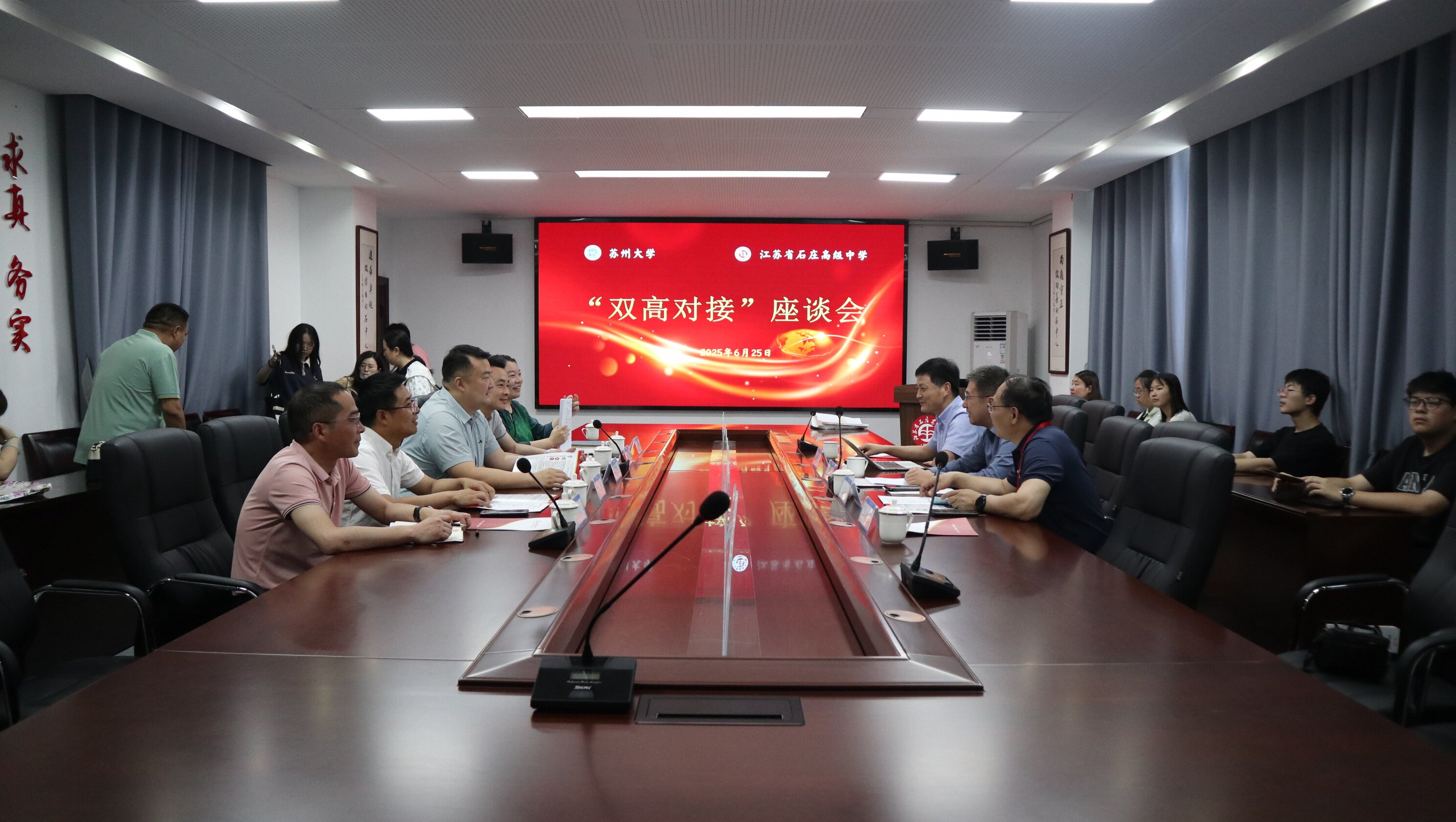学校高度重视招生宣传工作。6月25日,校党委常委、宣传部部长吴江,基本建设处处长顾建忠,学院党委书记赵承良一行赴江苏省石庄高级中学开展“双高对接”交流座谈,受到了江苏省石庄高级中学曹正国校长的热情接待。座谈会上吴部长介绍了苏州城市发展概况,91猫先生 的办学历史、专业建设、人才培养等,解读了2025年91猫先生 招生政策。双方围绕教育资源共享、人才衔接培养、科普教育等议题展开深入交流。随后,吴部长一行回答了石庄高级中学考生及家长提出的咨询问题。
