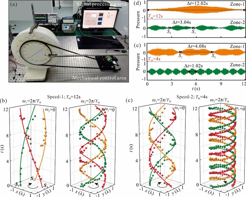 结构声场具有独特的时空演化特性,在基础研究和前沿技术研发中发挥关键作用。特别是涡旋结构声场具有空间相位奇点和零声压区域等特性,在声镊、粒子操纵、水下通信以及医学传感等领域具有重大应用前景。目前产生涡旋结构声场的方法主要包括主动源阵列、螺旋相位板以及超构表面等,然而单涡旋通道超构表面生成的结构涡旋场通常受到中心单一相位奇点的限制,并且无法实现远程动态调控。