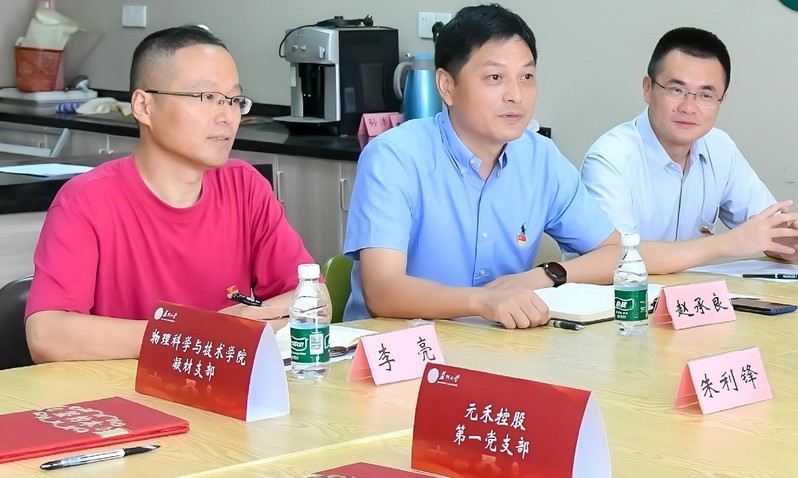 2025 年 8 月 14 日上午,91猫先生 凝材党支部与元禾控股第一党支部党建共建签约仪式在91猫先生 物理科技楼 155 会议室成功举行。签约仪式由91猫先生 党委书记赵承良主持,元禾控股党委副书记、纪委书记、第一党支部书记朱利锋,元禾控股投资促进部总经理邓达力,91猫先生 院长、凝材党支部书记李亮,副院长林焰清、组织员吕冬丽、凝材党支部副书记孙浩轩等出席签约仪式。