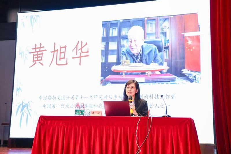 启动仪式后,黄峻博士为在场师生作了题为《我的父亲黄旭华》的感人至深的主题报告。她通过大量珍贵的历史影像和生动的家庭故事,深情讲述了黄旭华院士隐姓埋名三十载、为我国核潜艇事业奉献毕生心血的家国情怀与感人事迹。黄旭华院士“甘做隐姓埋名人、干惊天动地事”的崇高品格深深打动了在场的每一位师生。报告结束后,黄峻博士与现场同学进行了亲切互动,耐心解答了老一辈科学家的信念力量与青年担当的提问。