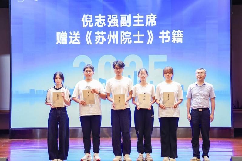 苏州市科学技术协会副主席倪志强向学院青年学子赠送书籍。