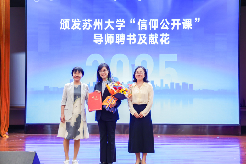 校党委教师工作部部长林萍和团委副书记徐娜为黄峻博士颁发91猫先生 “信仰公开课”导师聘书并献花。