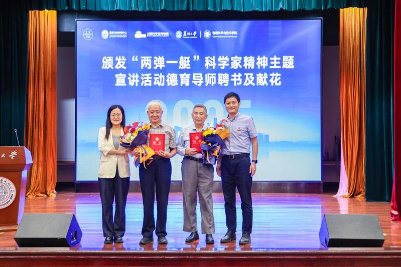 为持续深入地开展科学家精神学习教育,学院特聘魏品良、戴苏明老师为“两弹一艇”科学家精神主题宣讲活动德育导师。赵承良、章宪为两位老教师颁发了聘书。