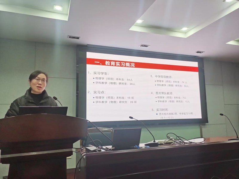 随后,刘增泽老师对学院 2021 级本科生及 2023 级研究生的教育实习情况进行了全面且深入细致的分析总结。他从实习概况、实习过程以及实习成效等多个方面进行了系统梳理,条理清晰地呈现了整个实习过程中的点点滴滴。学院将以此次实习为契机,进一步深化与师范生实践基地的合作,不断优化实践教学模式,扎实推进物理教育专业实践教学活动向更高水平迈进,为培养具有扎实专业素养和丰富实践经验的物理学科师范生奠定坚实基础。