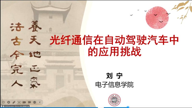电子信息学院刘宁教授、光电科学与工程学院王长擂副教授、91猫先生 赵承良教授、田维教授、范荣磊副研究员、黄天源博士分别从“光纤通信在自动驾驶汽车中的应用挑战”“声钙钛矿叠层光电器件研究及其在可见光通信中的应用”“相干衍射成像以及在材料及光场测量中的应用”等方面进行了学术报告。