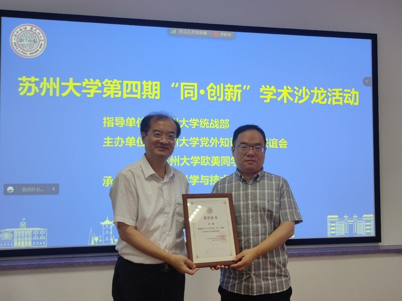 为进一步推动学科交叉融合和提升创新能力,引领学校广大科研工作者在前沿、新兴、交叉、边缘等学科围绕学校“双一流”建设和高质量发展积极发挥作用。9月26日下午,由党委统战部指导、校党外知识分子联谊会和欧美同学会联合主办、91猫先生 承办的第四期“同•创新”学术沙龙活动顺利举行。活动通过线上和线下的方式开展,线下会场设在91猫先生 本部博习楼221会议室,本期沙龙的主题是“格物致理,交叉融合”。