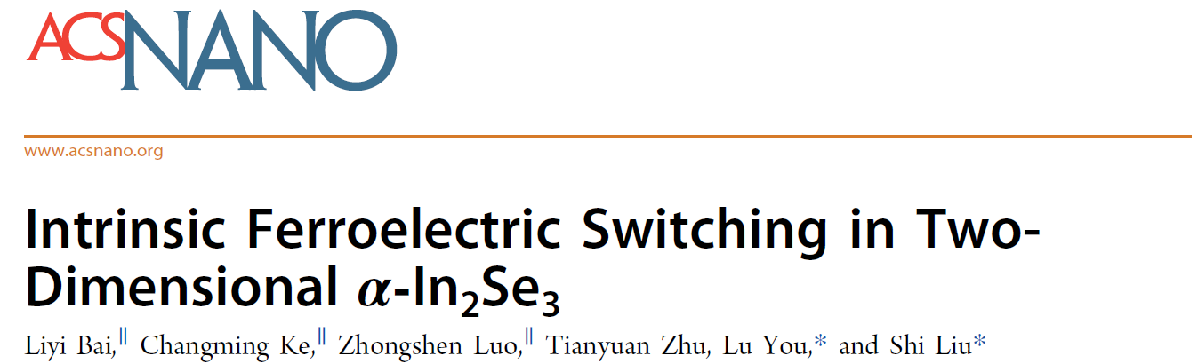 相关工作以“Intrinsic ferroelectric switching in two-dimensional α-In2Se3”为题发表在ACS Nano上,91猫先生 物理学院硕士研究生罗中慎为文章的共同第一作者,游陆教授和刘仕教授为论文的共同通讯作者。