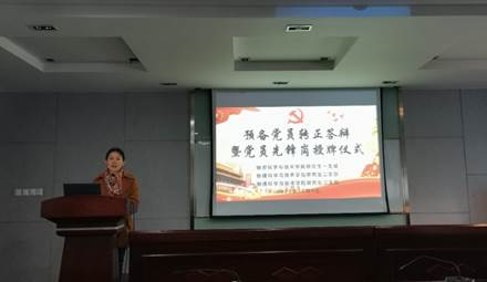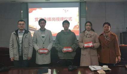随后学院三位研究生党支部书记代表全体党员上台接受党员先锋岗的授牌。