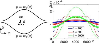 2025年1月6日《Physical Review Research》发表了91猫先生 赵永峰副教授关于管道中活性粒子输运规律的理论研究工作,题为《Active particles in a tube: A generalized entropy potential approach》。该研究构造了在长管道极限下活性粒子在宽度可变管道中运动的Fick-Jacobs方程,将布朗粒子熵势的概念推广至活性粒子。活性粒子在管道中的运动关联着细菌侵染生物组织等众多重要的生物问题。Fick-Jacobs方程将高维的粒子动力学方程约化到一维,大大简化了粒子在管道中输运性质的分析与计算。