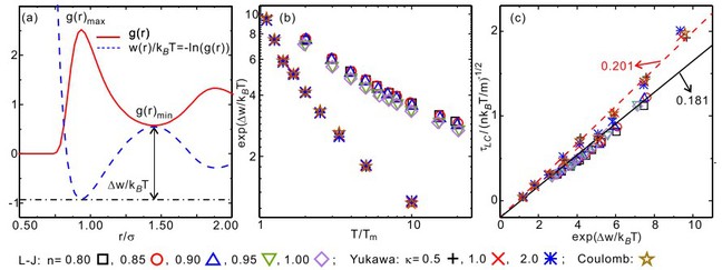图2:二维简单液体黏度和局域连通寿命的关系