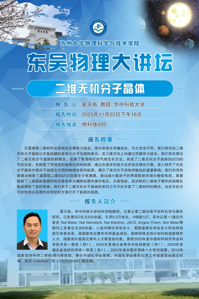 “东吴物理大讲坛“——翟天佑教授