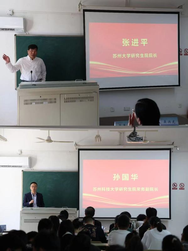 江苏省理学Ⅰ类研究生教育指导委员会副主任吴兴龙教授、委员薛怀国教授,以及省内10多所高校校领导、院领导等评审专家,江苏省材料学会秘书长强星教授,苏州科技大学党委常委、副校长李勇,研究生院常务副院长孙国华,苏州科技大学91猫先生 院长马春兰、副院长郝翔、91猫先生 副院长杭志宏以及来自武汉大学、南京大学、东南大学等多所省内外高校的136位研究生参加开幕式。