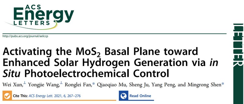 近日,91猫先生 范荣磊助理研究员(共同通讯作者)、雎胜教授和沈明荣教授(共同通讯作者)合作,在构建高效稳定的Si光阴极用于太阳能分解水制氢方面取得创新性研究成果。相关工作的第一作者为2018级博士研究生荀威,以91猫先生 为第一单位,以“Activating the MoS2 Basal Plane toward Enhanced Solar Hydrogen Generation via in Situ Photoelectrochemical Control”为题发表在国际能源领域顶级期刊ACS Energy Letters上。(ACS Energy Lett. 2021, 6, 267−276,影响因子:19.003)