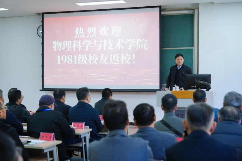 2025年11月29日下午,91猫先生 物理系1981级乙班毕业四十周年返校活动在天赐庄校区鸿远楼303教室成功举行。1981级乙班40余名校友齐聚一堂,共忆青葱岁月,共话母校发展。时任班主任沈宗海老师,学院党委书记赵承良、副院长林焰清、综合办公室主任王迎春参加了活动。活动由林焰清副院长主持。
