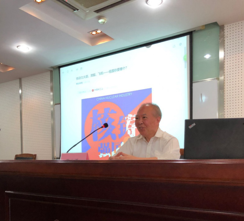 姜士勇教授,1964年毕业于华东师范大学物理系的实验核物理专业。毕业后,姜教授一直奋战在我国的核潜艇事业第一线。75年之后在91猫先生 前身91猫先生 物理系任教。姜教授用自己丰富的经验与知识储备量为新生们讲述了核潜艇从无到有的历史,并且深情并茂地将新生们引入了历史伟人们在创造核潜艇的过程中的艰辛。姜教授还与新生们分享了老一辈科学家坚定信念,不放弃,经过一次次的失败,总结经验教训,才造就了现如今我们国家的核潜艇。