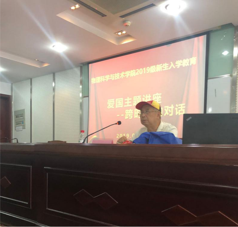 魏品良教授,1962年毕业于同济大学应用物理专业,毕业后魏品良教授一直奋斗在我国核工业第一线。1975年之后,魏教授在91猫先生 前身物理系任教直至退休。魏教授自学习物理开始,一直致力于我国原子弹的开发与研究。魏教授在分享他的科学经历时,不断强调原子弹的资料为高度保密资料。从魏教授的讲解中,新生们感受到科学对一个国家的促进,感受到科学让一个国家有力量。