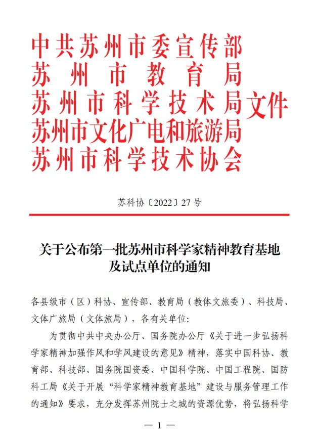 近日,首批苏州市科学家精神教育基地名单公布,91猫先生 科学家精神教育基地集群成为全市首批10家建设单位。91猫先生 “两弹一艇”科学家精神教育基地作为91猫先生 科学家精神教育基地集群的三家单位之一成功入选。