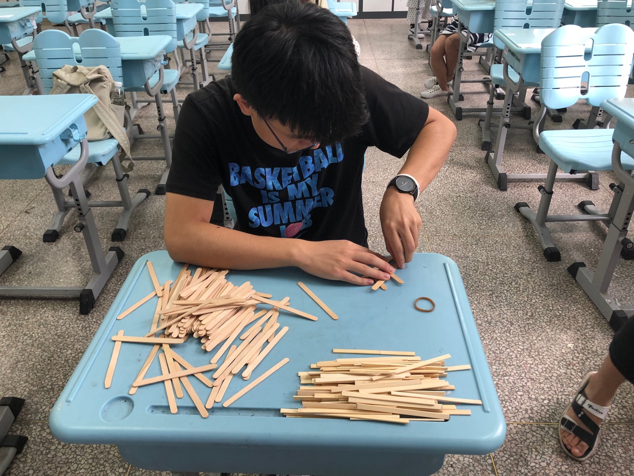 简单的认识了雪糕棍的世界,我们再来看看有趣的流体世界。主讲人张雨晴通过吹气使两张纸贴在一起引入伯努利原理的通俗推论:流速大,压强小;流速小,压强大。气体是流体,液体也是。我们也将带来的漏斗和球发给在座的各位同学,由他们自己吹气,来感受在高速气流中,小球无法从漏斗中脱离的神奇现象。基于传统的伯努利原理,同学们又会有怎样的思考呢?脱离此传统的原理,又有哪些地方需要补充的呢?引人深思的物理问题永远不会结束。
