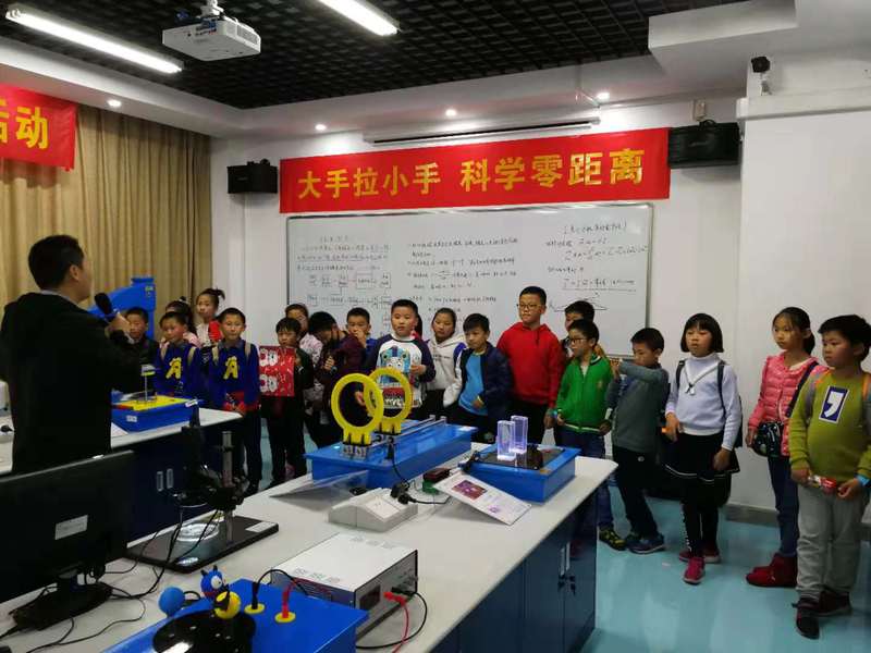 活动中,教师和志愿者们通过生动的语言、形象的比喻,将原本专业术语多、科技含量高的物理学知识讲解得通俗易懂,用一个个生动鲜活的小故事将科普基地中的“喷水鱼洗、爱情温度计、辉光球、磁铁同性相吸、哑铃悬浮、摸不到的草莓、手摸发电器、光学偏振片”等妙趣横生的物理现象的原理描述得淋漓尽致,加深了小朋友们对于物理科学的了解,激发了小朋友们对科学的热情和兴趣,开启了藏在他们心中的科学之门。此次科学开放日活动活动以新颖的形式、丰富的内容受到了小学生们的热烈欢迎。