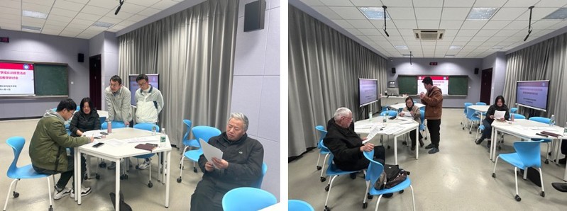 在试讲和教案打磨活动环节,新教师结合本学期教授的课程,自主选择了25分钟的教学片段进行现场展示,并详细介绍自己的教案设计。经验丰富的老教师进行认真评议,对新教师的试讲和教案给予充分的肯定,同时对不足之处进行点评与指导,并就教学内容组织、PPT制作和板书设计、学生学习兴趣提升等给出了切实可行的建议。须萍老师在点评中肯定了四位新教师的教姿教态、教学语言以及板书书写,并提醒新教师们在教学设计中要加入课程思政元素,注重课程育人。随后,教学督导袁海泉、戴苏明,以及周丽萍、桑芝芳等教师对新教师的教案进行了一对一辅导打磨。