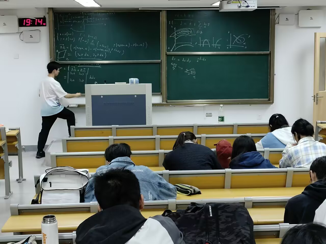 金韵同学将学过的知识进行了整体的梳理,同时和大家一起回顾公式是如何推导出来的,通过不断列举例题来帮助大家理解公式与定义。在辅导的最后金韵同学提醒大家,要把书整体看一遍,也要清楚各个式子的定义,注意细节,简单题不能错,要加深对空间曲面和曲线和二重积分的理解。在课堂的最后,金韵同学鼓励大家放平心态,期中考试不会为难大家,也要注意考试要求,不要犯错。