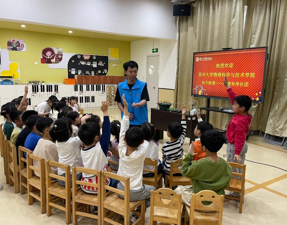 “科学商店”公益团队的志愿者们来到苏大实验学校幼儿园部,带幼儿园的小朋友们探索了科学世界的奇妙。本次科普团队由本科生入党积极分子与学院学生科技协会的志愿者们组成。活动依托中国电工技术学会科普教育基地、江苏省科普教育基地提供的趣味科普器材开展。