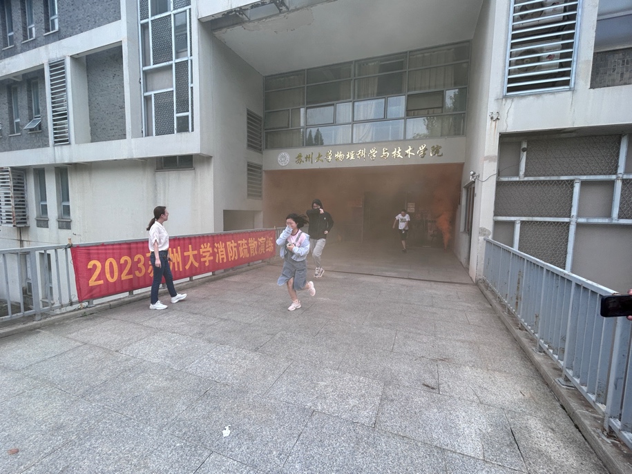 下午3点,物理科技楼模拟突发火情,中控室值班人员启动紧急疏散预案。随着科技楼消防报警声的响起,消防应急疏散演习正式开始。各楼层师生在紧急疏散警报提示后,按照事先设定疏散路线,在应急指挥人员和疏散引导组的组织下,用湿毛巾或衣物捂住口鼻,放低身体,以手扶墙分楼道快速、有序地撤离物科楼。到达东广场安全区域后,各实验室安全员立刻清点人数并及时上报。