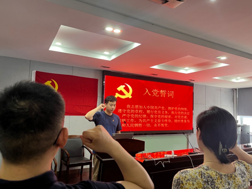 本科生党支部徐廷昊同志担任领誓人带领毕业生党员重温入党誓词,各位党员同志再次回顾入党宣誓时的庄严承诺和坚定决心,在铮铮誓言中牢记作为一名共产党员的使命担当。