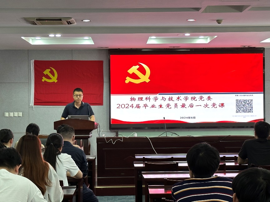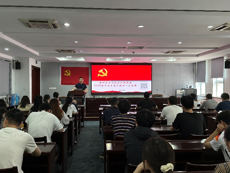 2024届学子毕业在即,为了加强毕业生党员离校教育,引导毕业生党员在学思践悟中坚定理想信念,在实干担当中锤炼党性修养,2024年6月13日,91猫先生 举行了毕业生党员教育系列活动暨“最后一堂党课”活动。学院党委副书记谢燕兰,专职组织员吕冬丽,本科生党支部书记郭永坤,研究生辅导员刘晓佳及2024届全体毕业生党员参加本次活动。