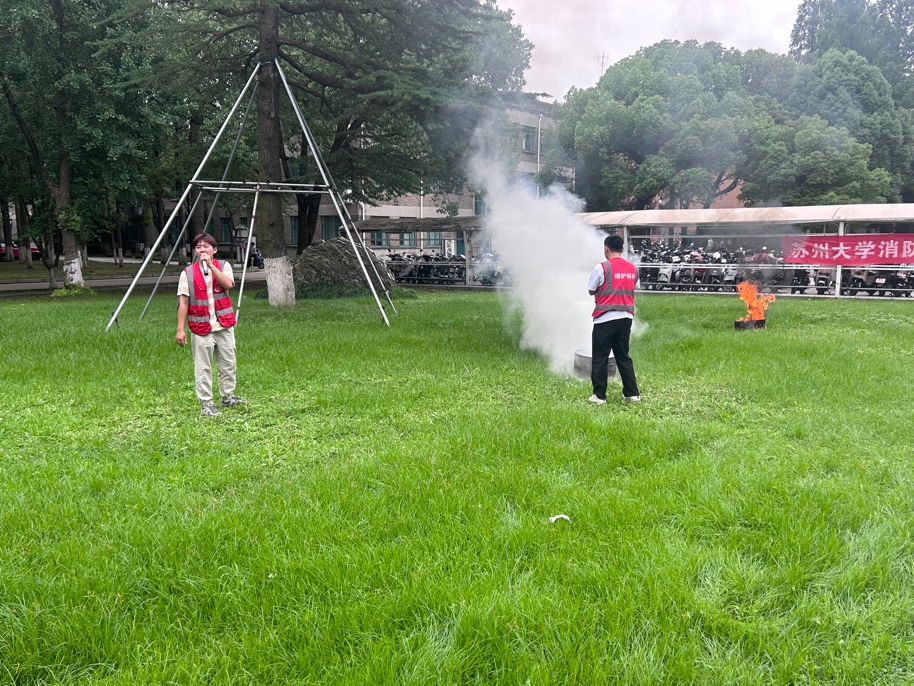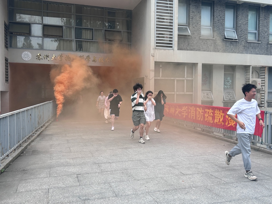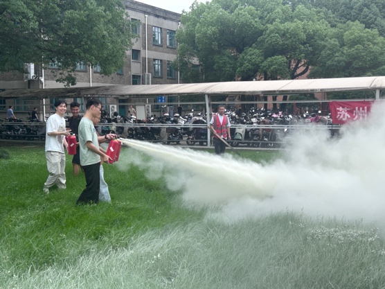 师生们在紧急疏散警报提示后,按照事先设定疏散路线,在应急指挥和疏散引导老师的组织下,快速、有序地撤离物科楼。到达东广场安全区域后,各实验室安全员立刻清点人数并及时上报。随后,保卫处消防科老师为大家讲解并示范了灭火器的正确使用方法,并现场指导师生进行了实地灭火演练。