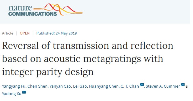 近日,91猫先生 的徐亚东副教授课题组与美国杜克大学的S. A. Cummer教授课题组及香港科技大学陈子亭教授合作设计和研究了一种透射型相位渐变超构光栅(Phase-gradient metagratings, PGM)。基于多重反射效应,揭示了其中复杂的衍射机理,发现了一种全新的衍射规律:PGM中的高级次衍射特性与PGM超晶格(Superlattice)内的单元个数m的奇偶性有关。通过改变m奇偶性,可以实现散射波在透射通道和反射通道之间的转换,并且这种现象具有很强的鲁棒性。相关成果以“Reversal of transmission and reflection based on acoustic metagratings with integer parity design”为题、以91猫先生 为第一单位,发表在《Nature Communications》杂志上。原91猫先生 博士生、现南京航空航天大学的伏洋洋副研究员、杜克大学的沈宸博士和91猫先生 博士研究生曹燕燕同学为论文的共同第一作者。在研究中,91猫先生 的高雷教授、厦门大学的陈焕阳教授给予大力支持。